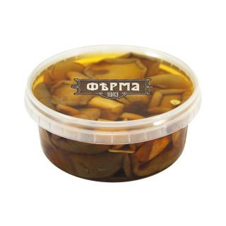 Отварные дикорастущие грибы, засоленные по традиционному рецепту. В сегодняшнем ассортименте Фермы 1913 только дикорастущие продукты – свежие грибы, солёные грибы (белые грибы, рыжики, белые грузди, маслята и другие), свежие сезонные ягоды, моченая брусника с сахаром.