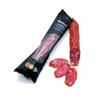 Изюминка этого продукта - благородный вкус и аромат чёрного трюфеля. Благодаря длительному процессу ферментации, вяления и сушки, колбаса «Трюфель» из свиного мяса приобретает восхитительную плотную, упругую консистенцию и привлекательный насыщенный цвет. При нарезке она источает невероятный пряный аромат, а во вкусе раскрываются глубокие ноты мяса в сочетании с изысканными тонами трюфеля. Эта колбаса станет настоящим украшением любого гастрономического вечера, безупречным дополнением к элитным сырам, благородным винам и крепким напиткам.