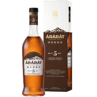 Коньяк Армянский Арарат 5 звезд 0,5л 40%. Коньяк приятного янтарного цвета с золотистым отливом, имеет тонкий и деликатный вкус с интенсивными тонами черной смородины и мягкой сладостью.