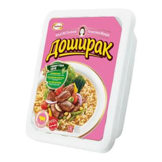 Лапша DOSHIRAK со вкусом телятины – лапша быстрого приготовления, обогащенная йодом, с кусочками телятины. В приправе из сушеных овощей содержится ламинария, богатая полезными для здоровья минералами и витаминами, благодаря которым нормализуется работа щитовидной железы, улучшаются обменные процессы в организме, нормализуется работа сердечно-сосудистой системы, восстанавливается витаминный баланс, снижается уровень холестерина, выводятся радионуклиды и токсины, укрепляется иммунитет.