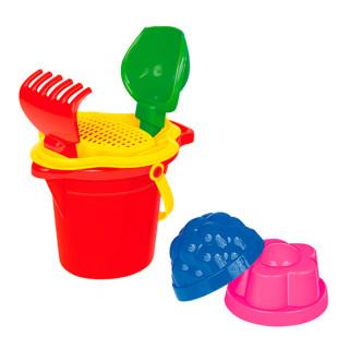 Набор №150: ведро малое с носиком, ситечко-цветок, совок, грабли, 2 формочки (2982)