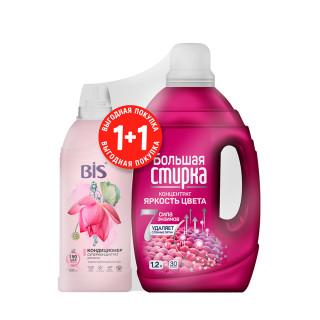 Набор для стирки Гель концентрат Большая стирка Color 1,2л + Кондиционер концентрат BIS Таинственный