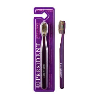 Зубная щетка PRESIDENT Exclusive Средняя 6 МИЛ подходит для тех, кому чистка зубов в удовольствие, для качественного ежедневного ухода. • Большая головка обеспечивает быстрое очищение внешних, внутренних и жевательных участков зубного ряда. • Закругленные щетинки деликатно полируют зубную эмаль и не травмируют десны. • Специально подобранная жесткость щетины 6 МИЛ позволяет эффективно удалять налет, а также предотвращает образование зубного камня. • Удобная, эргономичная ручка