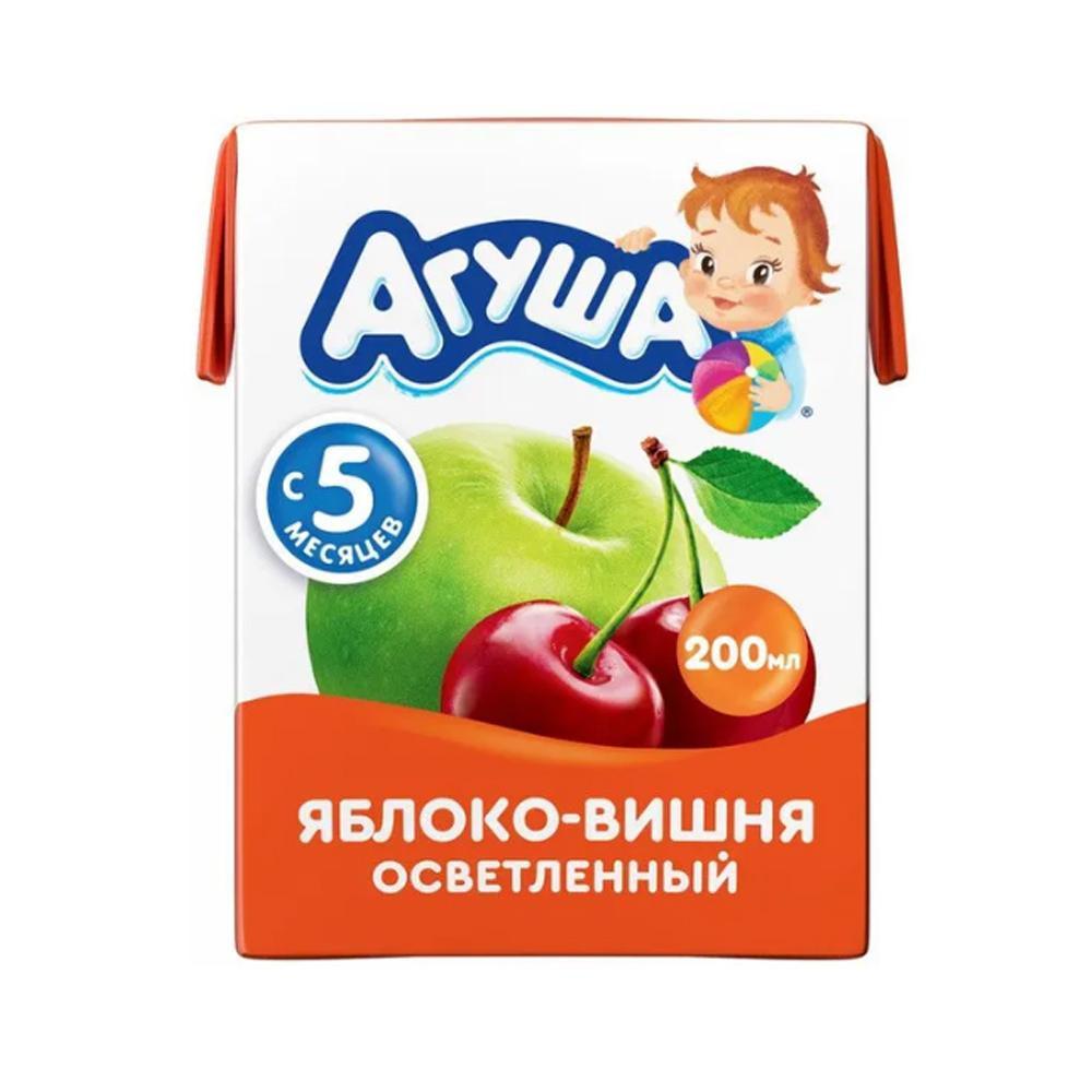 Детский сок Агуша из яблока и вишни – это яркий и натуральный вкус спелых фруктов и ягод без добавленного сахара и консервантов.