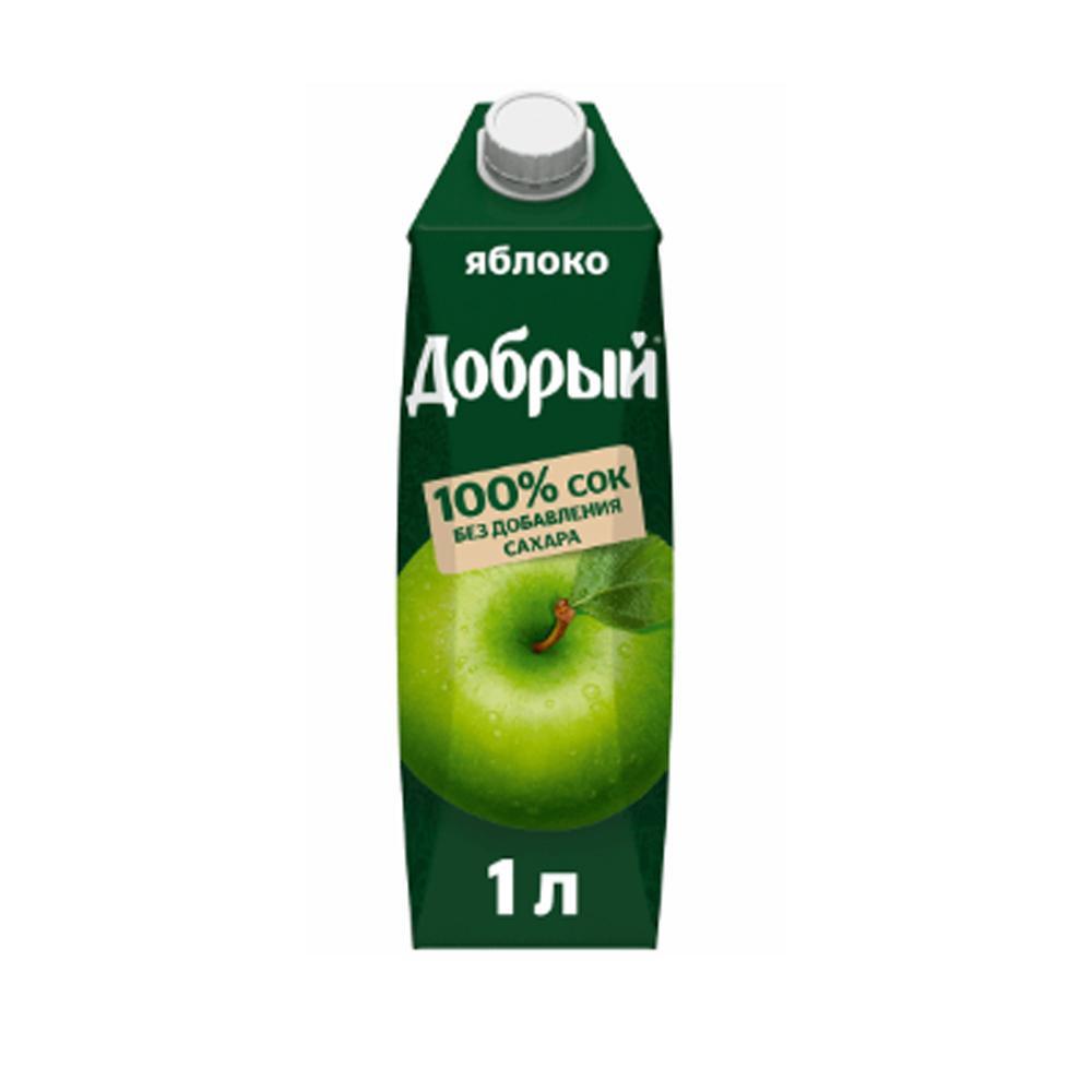 Сок ДОБРЫЙ Яблоко 1л ‒ 100% натуральный сок яблочный без добавления сахара, консервантов и красителей. В каждом глотке ‒ польза спелого яблока и частичка доброты. Благодаря объему в 1 литр идеально подходит для семейного ужина или обеда.
